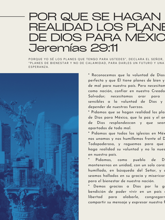 Estaremos impulsando un día nacional de oración y ayuno por México y las elecciones este 1 de Mayo.